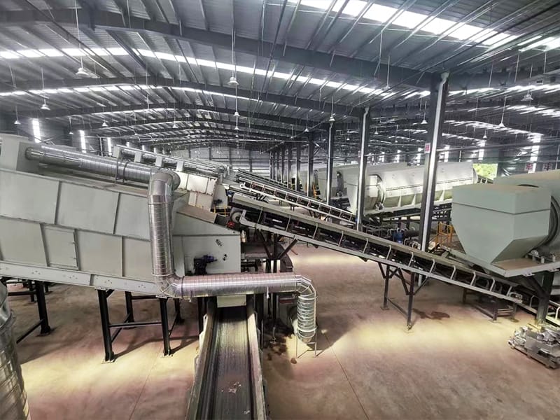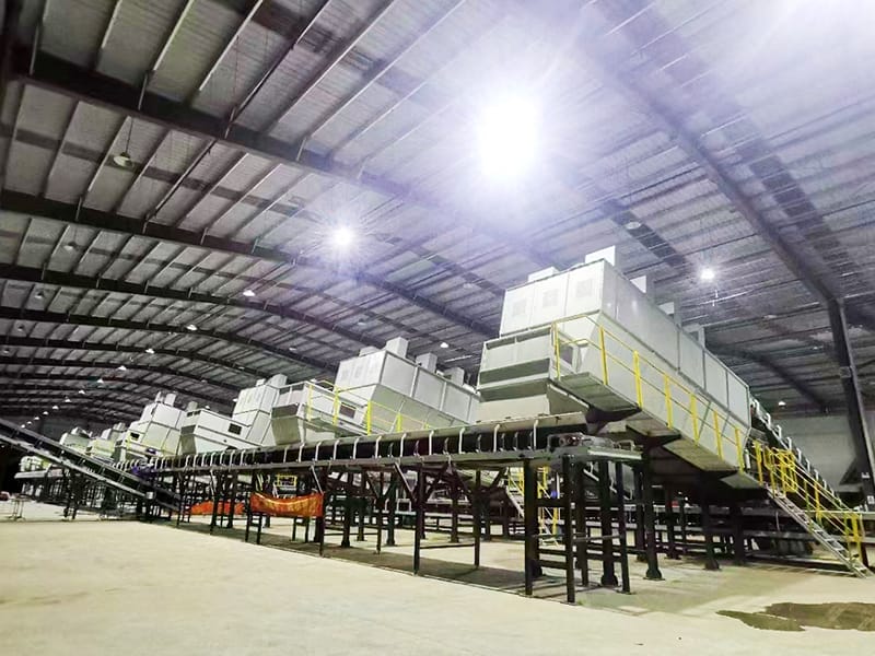Sistem pengolahan limbah TPA terutama terdiri dari peralatan seperti rotary screen, perangkat penyortiran, dan pemisah magnetik. Saat tiba di lokasi, limbah pertama-tama melewati rotary screen, yang memisahkan material menjadi fraksi kasar (oversize) dan fraksi halus (undersize). Material undersize merupakan tanah humus, sedangkan fraksi oversize menjalani pemisahan udara untuk membagi menjadi material berat dan ringan. Fraksi ringan terutama terdiri dari limbah plastik, sedangkan fraksi berat mencakup tanah humus dan puing konstruksi. Logam besi kemudian dipisahkan dari tanah humus dan puing konstruksi menggunakan pemisah magnetik.