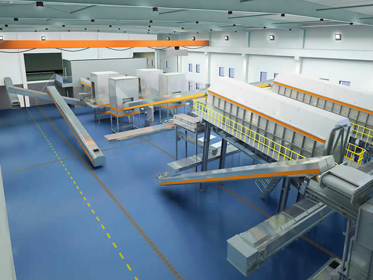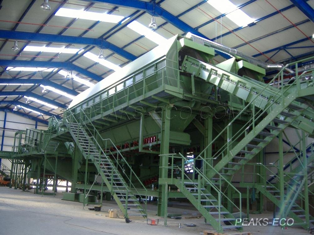 Sistem pemilah dirancang untuk pemisahan dan pemulihan otomatis material organik, plastik, logam, dan kertas dari sampah makanan.