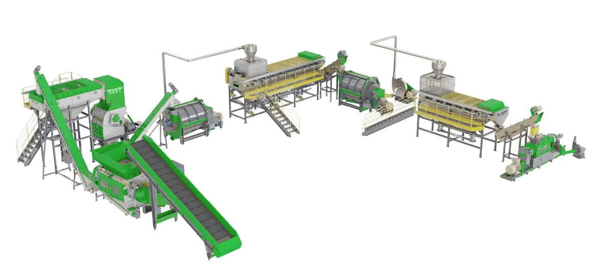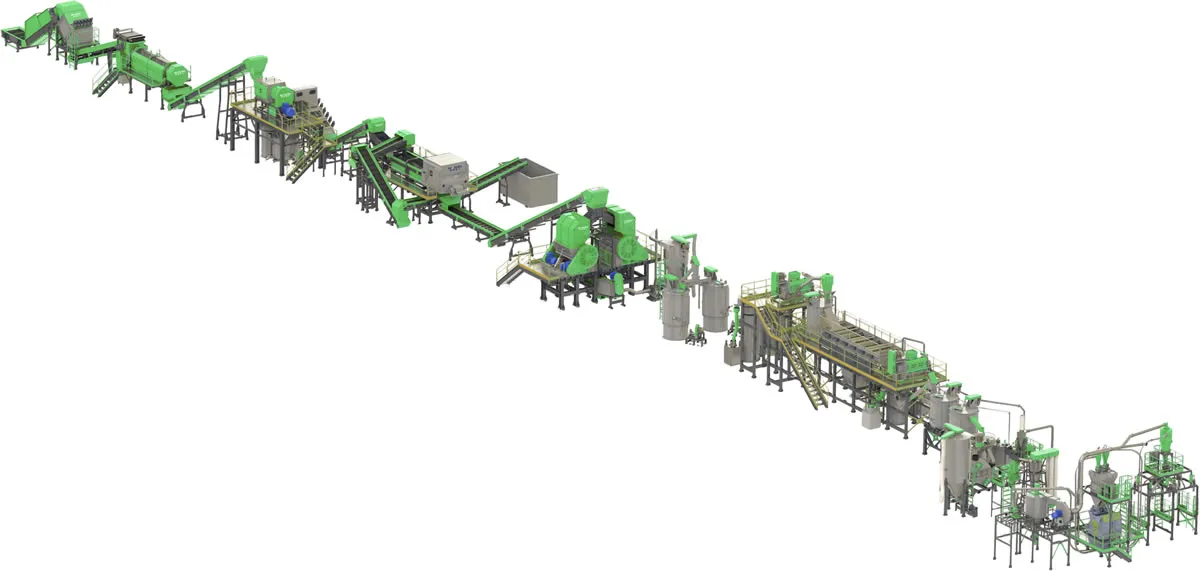 Lini pencucian ini dirancang untuk membersihkan limbah plastik PET, yang umumnya digunakan untuk memproduksi botol minuman, wadah makanan, dan film industri. Serbuk plastik hasil dari lini pencucian ini dapat digunakan dalam proses spinning, tekstil, serat, dan produk kemasan.