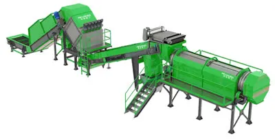 Bale opener dan trommel screen digunakan untuk menghilangkan kaca, logam, kayu, kertas, karton, dan kontaminan minor lainnya dari botol plastik sebelum proses granulasi. Proses ini secara efektif meningkatkan kualitas operasi daur ulang dengan menyingkirkan kotoran dari botol plastik.