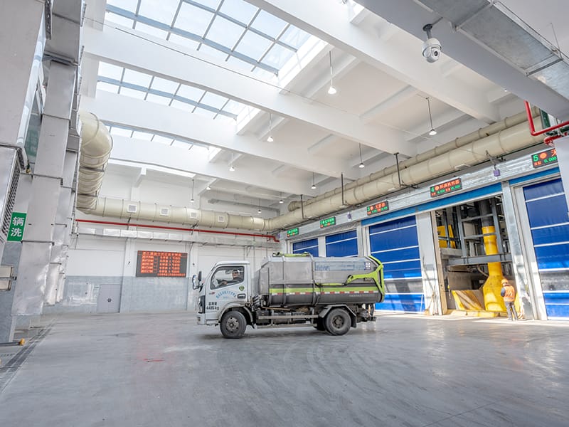 Deqing Green Circular Transfer Center memanfaatkan proses kompresi dan transfer vertikal dengan kapasitas desain 500 ton per hari. Zona transfer dibangun dengan struktur dua lapis yang mengoptimalkan penggunaan ruang dan meningkatkan efisiensi operasional.